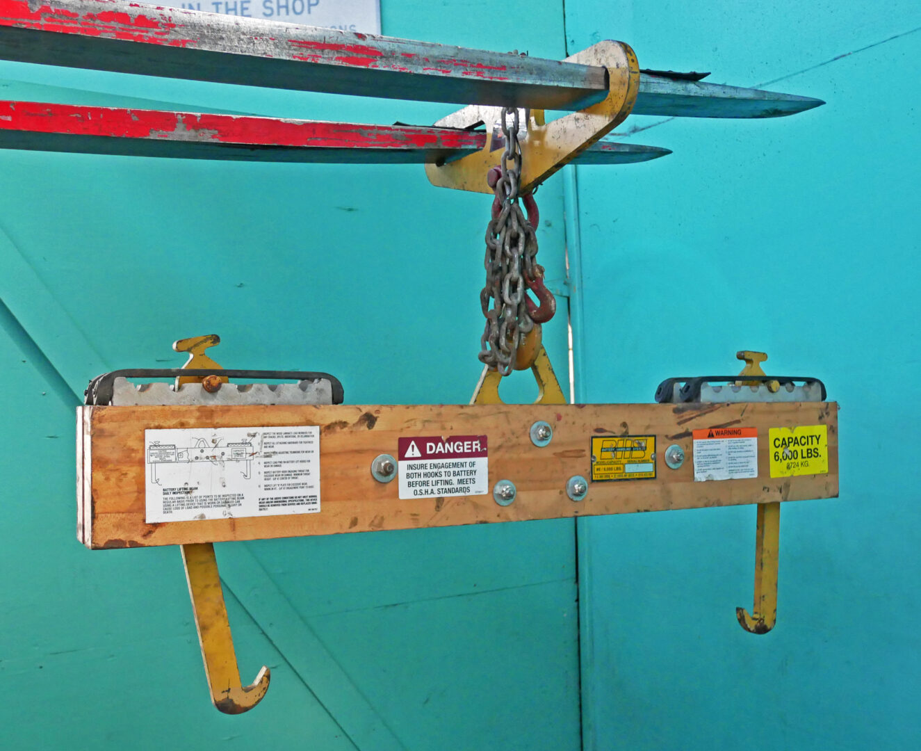 BHS ‘Battery Handling Systems’ 6,000 lbs. Capacity No. 6 Battery Lifting Beam with Fork Attachment