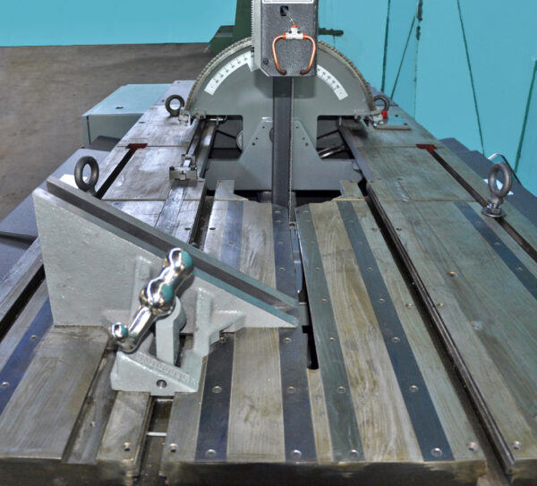 Adjustable stops can be pre-set to stop advance and return of blade and also stop motor at any location within the 18″ travel of the blade