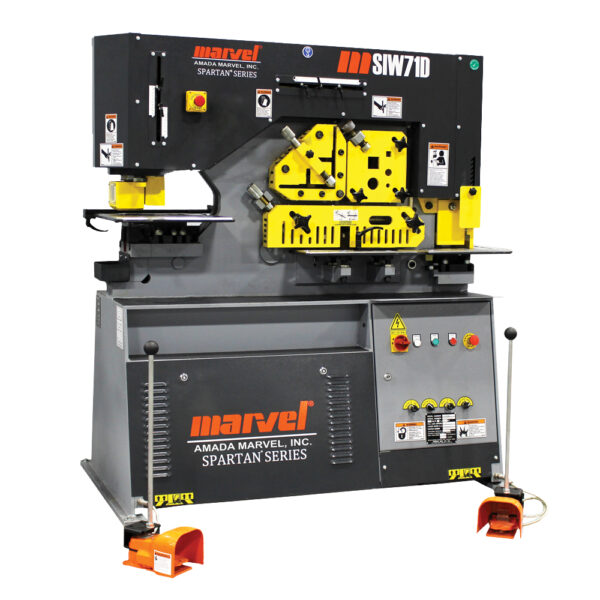 Marvel Spartan MSIW71D heavy-duty, dual cylinder, completely integrated Ironworker with 71 ton capacity, 5 work stations and simultaneous dual operation
