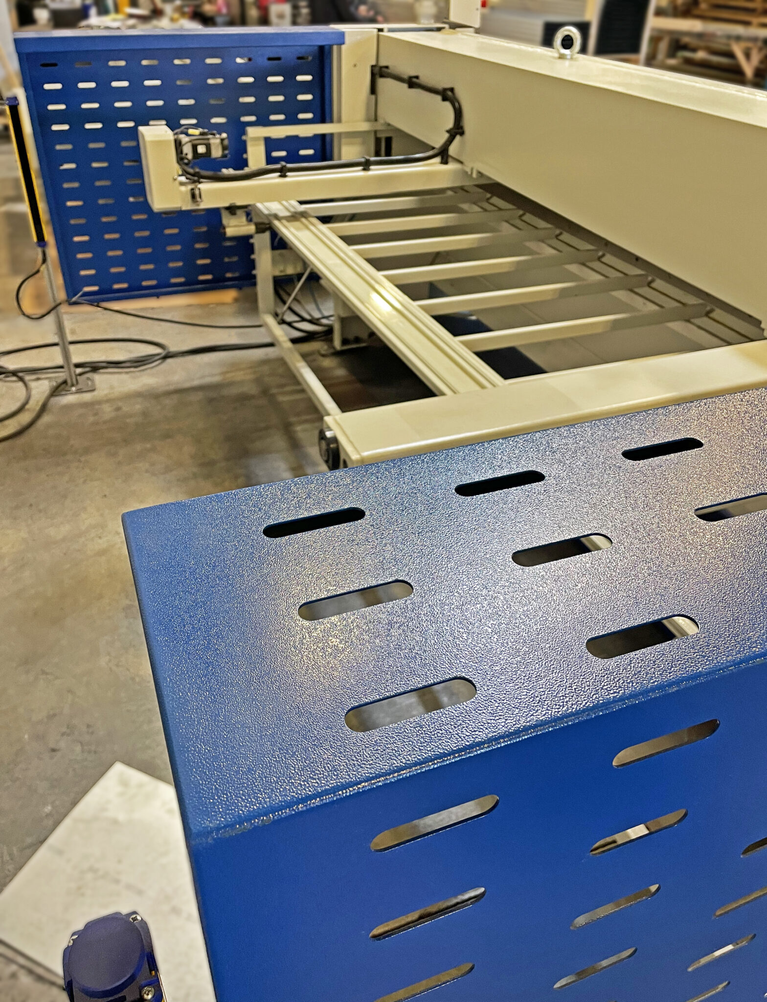 Fixed Side Squaring Gauge and Stainless Feeding Table with Rulers on Each 500 mm (19.69″) Length