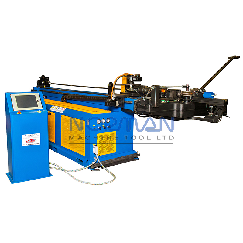 Graphic bend simulation software included; Programmable internal mandrel lubrication (3 settings), high capacity with auxiliary hydraulic oil cooling, quick-change tooling system, standard 13′ table with extension available, tail stock with through spindle accepts longer material, displays abolsute (ABS) or incremental (INC) positioning with inch or metric read out, accepts YBC and XYZ input values, Y – feeding electric servo, B – rotation electric servo, C – bending hydraulic CNC
