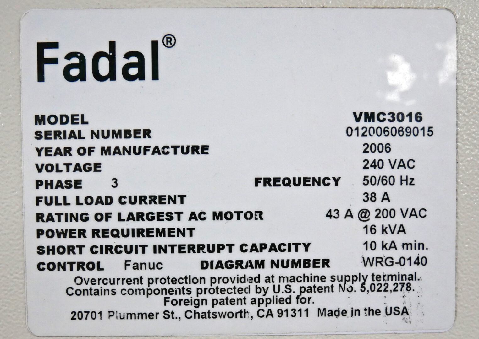 Fadal 16″ x 30″ CNC Vertical Machining Center, VMC 3016