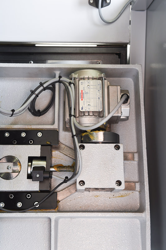 Cast iron shuttle features automatic multi-indexing up to 19″ in a single stroke with automatic kerf compensation. Powered by ball screw and stepper motor