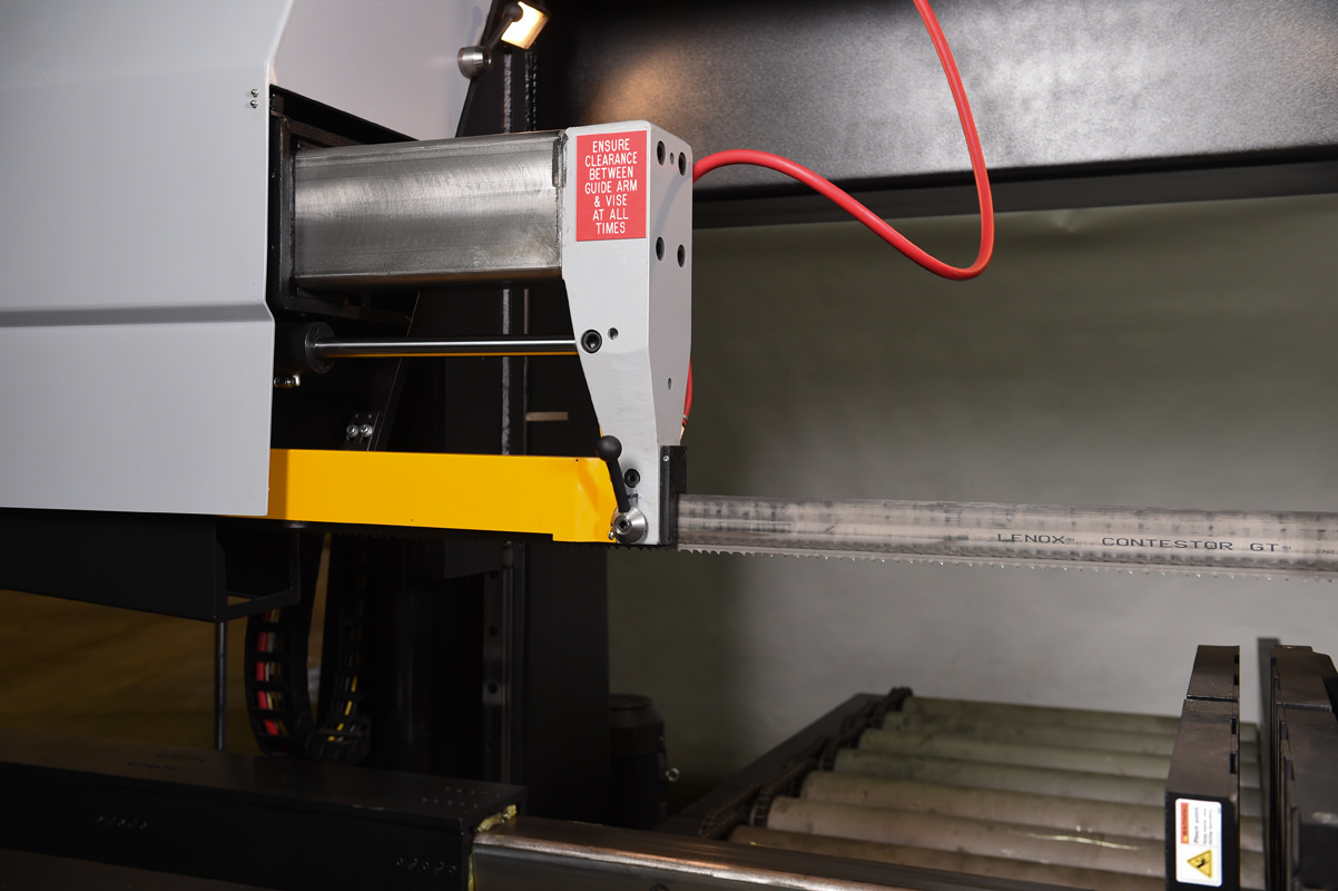 Its PLC control digitally displays blade speed, feed rate, head-up limit position, and cut elapsed time, and time remaining. Featuring a 40″ x 40″ capacity, 20 HP motor, and 3″ blade, the H-40/40 is a reliable choice for all your heavy-duty horizontal metal cutting applications