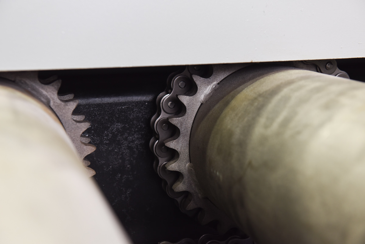 8′ of powered rollers built into the bed of the machine