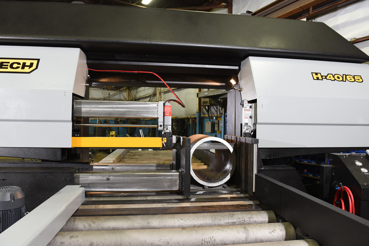 Its PLC control digitally displays blade speed, feed rate, head up limit position, and cut elapsed time, and time remaining. Featuring a 40″ x 65″ capacity, 20 HP motor, and 3″ blade, the H-40/65 is a reliable choice for all your heavy-duty horizontal metal cutting applications